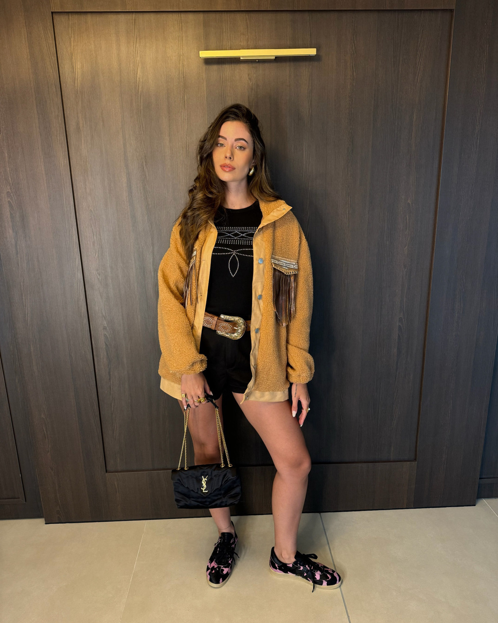 Camiseta canelada com elastano. Desenvolvida em Ribana Chaud Menegotti, com 64% poliéster, 34% poliamida e 2% elastano, ela se adapta perfeitamente ao seu corpo. A aplicação em hot fix, tachas prata velho e pedrinhas furta-cor conferem um toque especial e sofisticado. Esta peça é essencial no guarda-roupa de toda cowgirl que deseja brilhar com autenticidade e estilo em qualquer ocasião!