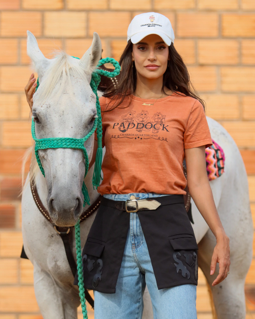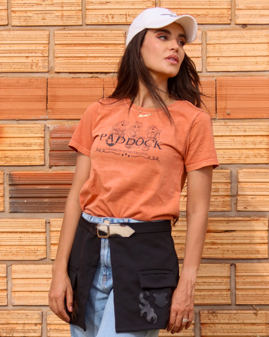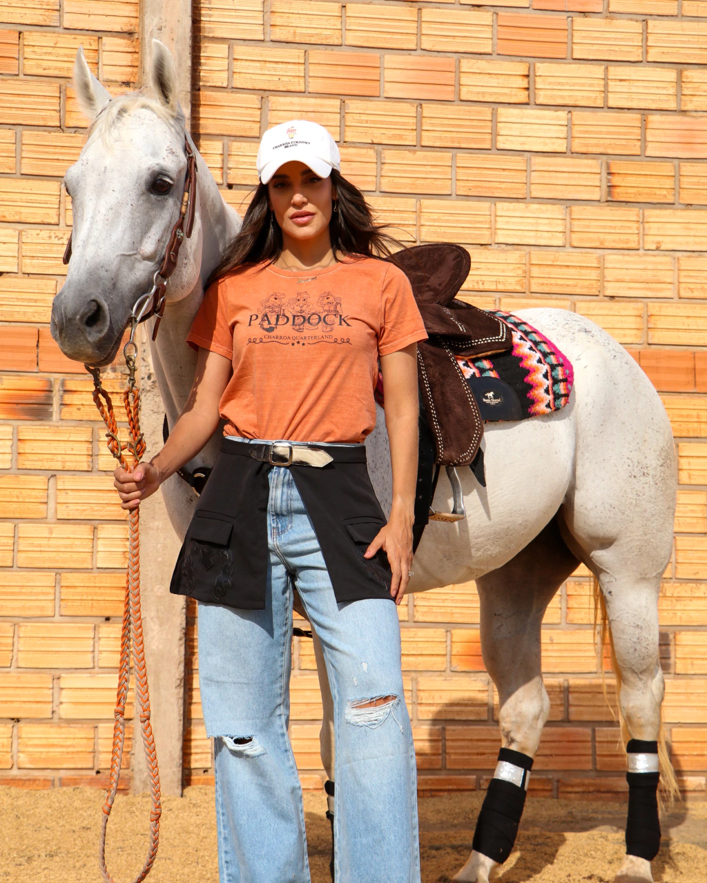 Camiseta Laranja Estonada: Uma peça exclusiva da nossa linha CHARROA QUARTERLAND, feita especialmente para as Cowgirls que adoram passar tempo no paddock ou ficam de olho no que acontece por lá.