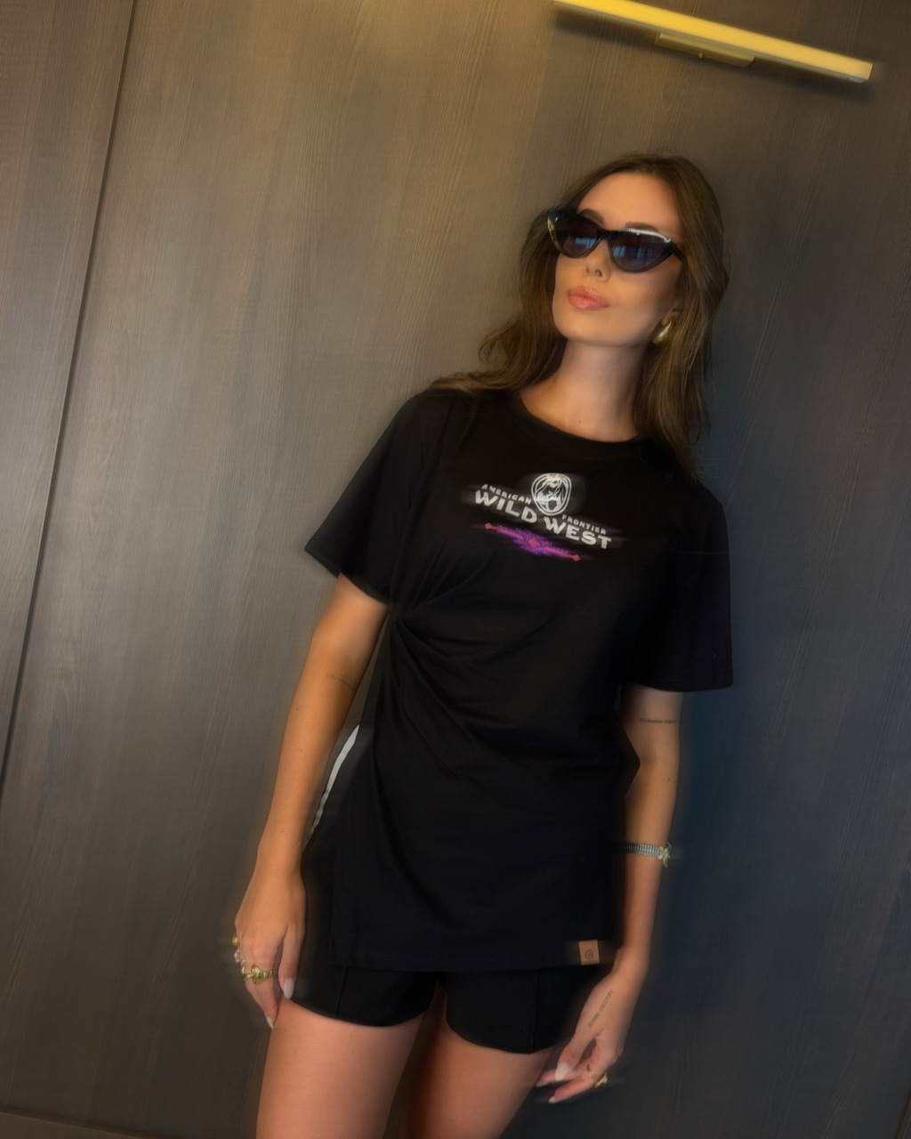 Camiseta 100% Algodão Wild West: A união perfeita entre conforto e estilo! Confeccionada em malha Menegotti, esta camiseta apresenta uma modelagem moderna com um repuxado na lateral, ideal para quem busca um toque contemporâneo. Com uma estampa em silk e um lindo bordado étnico central, ela é a escolha perfeita para qualquer ocasião.
